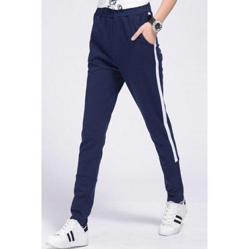 Women's Casual Drawstring Loose-Fitting Striped Sports Pants - Purplish Blue S