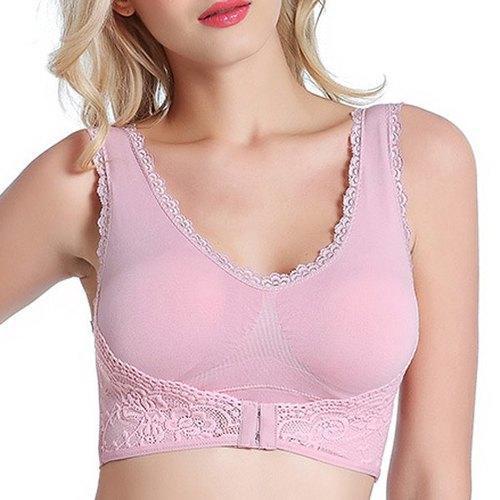 Stylish Front Breasted Push Up Sporty Bra For Women - Pink Xl