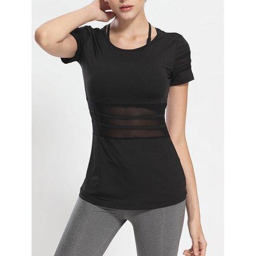 Mesh Panel Long Workout Gym Running T-Shirt - Black Xl