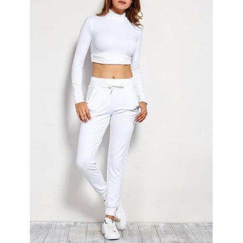 Long Sleeve Crop Top and Drawstring Pants - White L