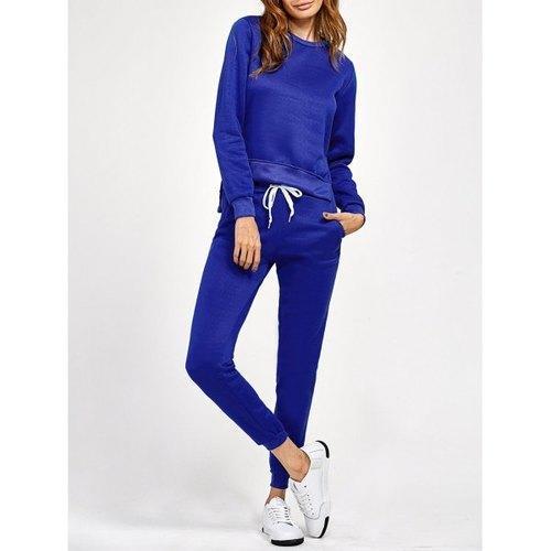 Side Slit High Low Sweatshirt and Pants - Blue S