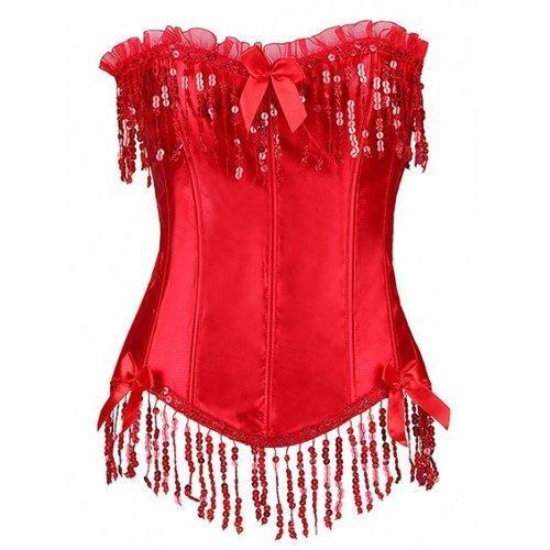 Sequined Fringe Steal Boned Corset - Red Xl