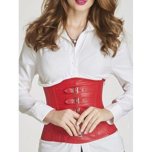 Faux Leather Buckle Underbust Corset - Red S
