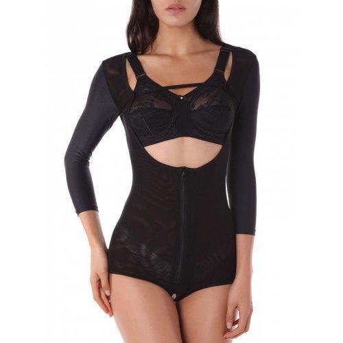 Zip Up Long Sleeve Corset Shorts Bodysuit - Black S
