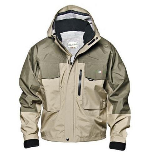 Pyramid Lake Wading Jacket is made of premium nylon micro-fiber material with Pore-Tech mil-spec breathable membrane and DuPont Teflon DWR and Ultrafresh antimicrobial treatment, one of the best materials on the market. It has a heavy duty front zipper with Velcro storm flap, lined hand warmer pockets, oversized gear pockets and a waterproof zippered wallet and cell phone pocket. Also includes a waist draw cord, d-ring landing net holder on the back and comes in sizes S-XXL.