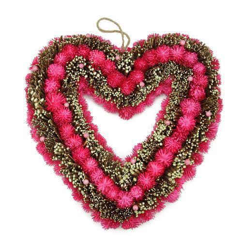 With spring right around the corner this adorable unique wreath is the perfect way to welcome in the new season Twigs tucked between bring pink flowers and berries Flat back allows wreath to hang nicely against any flat surface No assembly required Comes ready-to-hang on a twine cord Recommended for indoor use only - if using outdoors place under a covered area Dimensions: 13.5"L x 13.5"W x 2.5"H Material(s): foam/wood/fabric