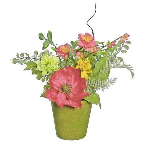 This beautiful flower arrangement would make a wonderful addition to your spring and summer decor Features red poppies with orange and green wildflowers Accented with mixed ferns and foliage Comes in a round brown and green pot Recommended for indoor use Dimensions: 12"H x 9"W x 5"D Pot dimensions: 4.25"H x 4.25"W x 4.25"D Material(s): PE/fabric/foam/ceramic